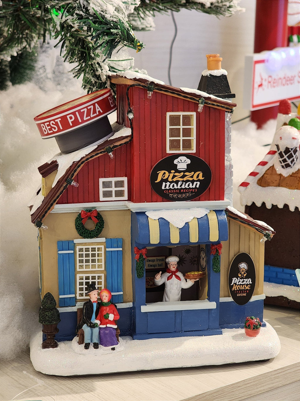 Cenário pizzaria, movimento da pizza no topo da vila, possui luz e som