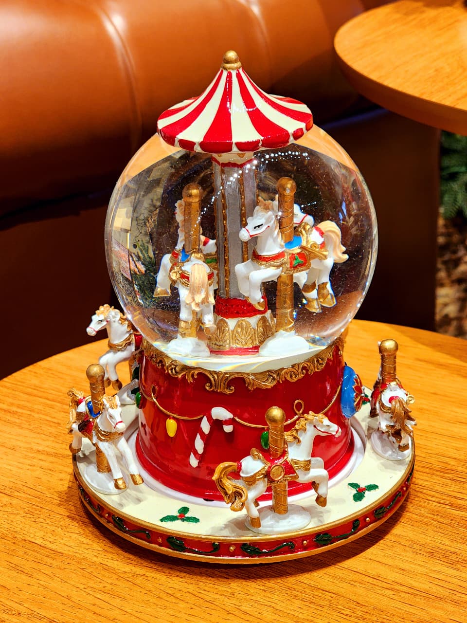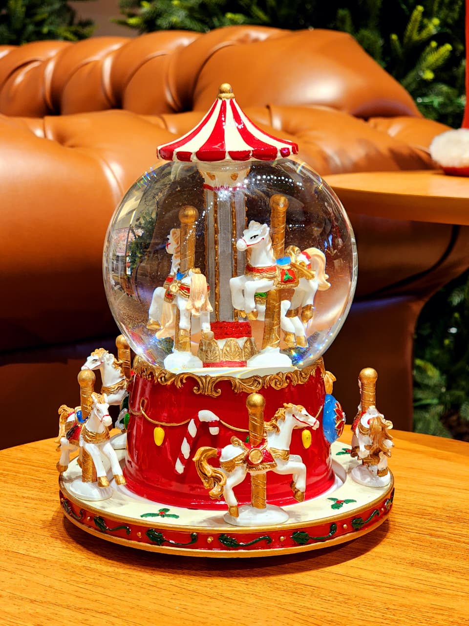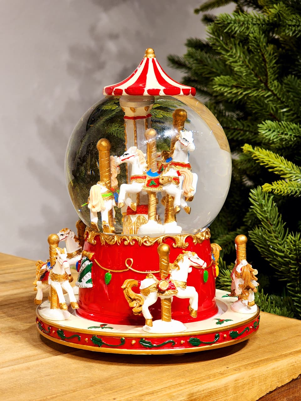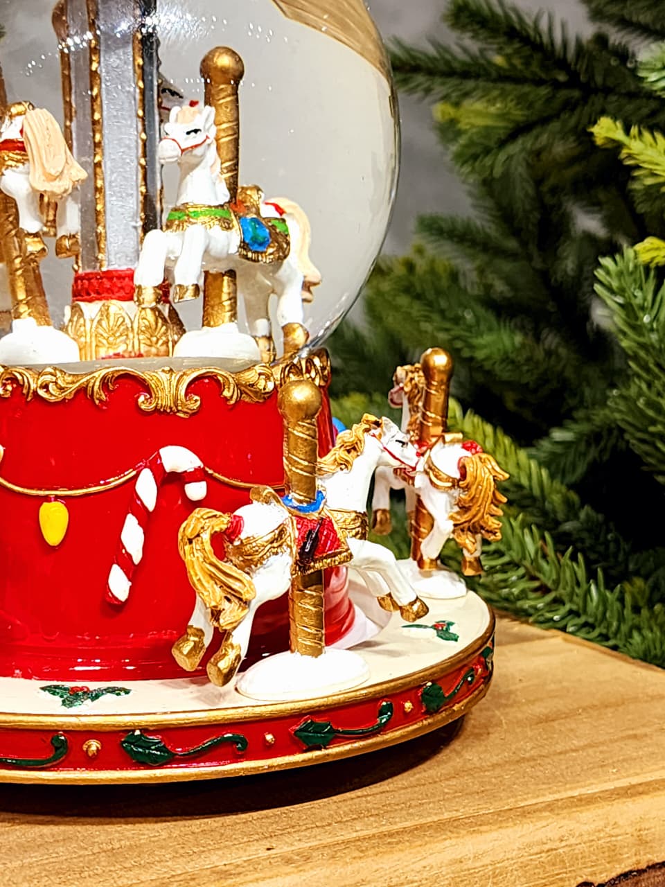 CENÁRIO NO GLOBO COM ÁGUA CARROSSEL COM MOVIMENTO, A PEÇA TEM UMA PINTURA BEM ESPECIAL E DETALHADA ESSE ACABAMENTO BRILHOSO DEIXA ELA MUITO LINDA.